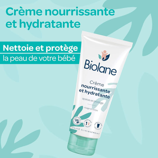BIOLANE – Crème Nourrissante et Hydratante - Bébé Visage et Corps - Apaise et Protège la peau - 98% d'origine naturelle - 100 ml