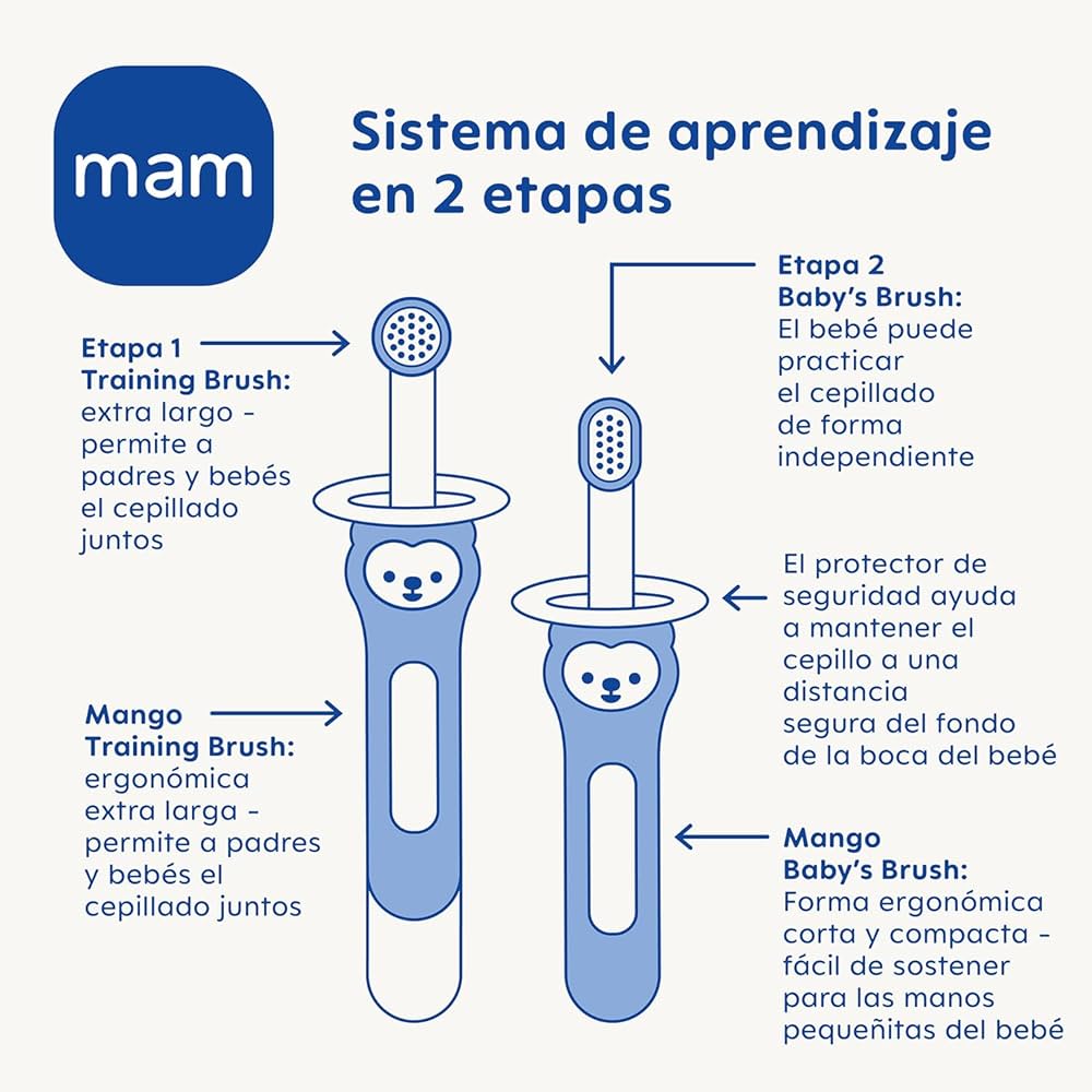 MAM Learn to Brush Kit de brosse à dents pour bébé à long manche pour enfant à partir de 5 mois et plus